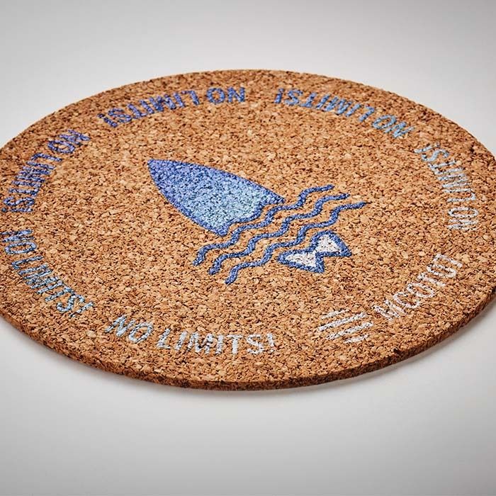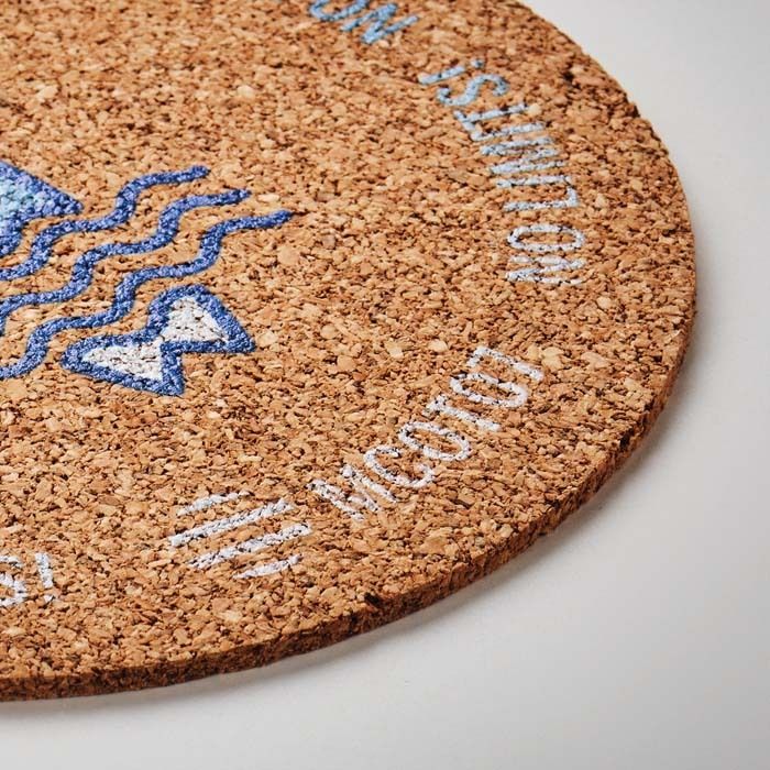 Σουβέρ από φελλό σε στρογγυλό σχήμα με εκτύπωση σε όλη την επιφάνεια.