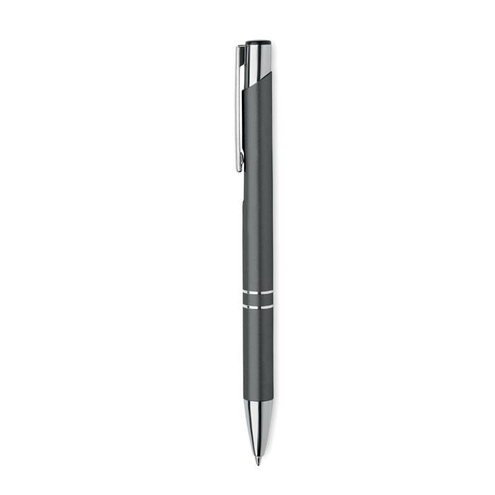 Στυλό με πιεστήρα από ανακυκλωμένο αλουμίνιο σε κλασικό σχέδιο. Γράφει με μπλε μελάνι.