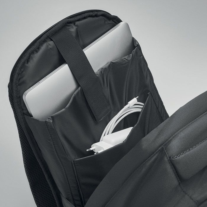 Αυτό το σακίδιο πλάτης 600D RPET είναι ιδανικό για καθημερινή χρήση. Χάρη στον επενδυμένο ιμάντα ώμου, είναι άνετο στη χρήση για μεγαλύτερες περιόδους. Η κύρια εσωτερική θήκη μπορεί να ανοίξει εντελώς, ώστε να έχετε εύκολη πρόσβαση σε όλα σας τα αντικείμενα. Το φερμουάρ βρίσκεται στο πίσω μέρος για περισσότερη ασφάλεια. Η κύρια θήκη έχει μικρότερες τσέπες που μπορούν να χωρέσουν πολλά αντικείμενα. Το σακίδιο διαθέτει θήκη για laptop ή tablet 13 ιντσών. Η μικρότερη μπροστινή θήκη μπορεί να χρησιμοποιηθεί για την αποθήκευση μικρότερων αντικειμένων.