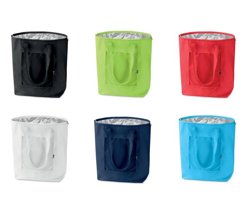 Βολική αναδιπλούμενη τσάντα cooler η οποία έχει φερμουάρ και μαζεύει σε σχήμα πορτοφολιού. Είναι από πολυεστέρα 210Τ και έχει εσωτερική επένδυση από φύλλο αλουμινίου. Χωρητικότητα 13L. Διατίθεται σε 6 χρώματα.