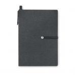 Σημειωματάριο από ανακυκλωμένο χαρτόνι με sticky notes και στυλό. Διαθέτει μεγάλα και μεσαία αυτοκόλλητα σημειώσεων (sticky notes) και σελιδοδείκτες 4 διαφορετικών χρωμάτων. Έχει 140 σελίδες με γραμμές (70 φύλλα). Περιλαμβάνει ασορτί στυλό από ανακυκλωμένο χαρτόνι και λεπτομέρειες ABS το οποίο γράφει με μαύρο μελάνι. Ασορτί ελαστικός ιμάντας κλεισίματος. Διαθέσιμο σε μπλε και μαύρο χρώμα.