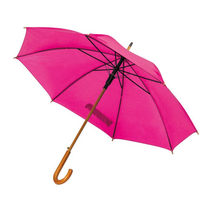 Αυτόματη ομπρέλα με λυγιστή ξύλινη λαβή, κορυφή και άκρες. Διατίθεται σε πολλά χρώματα και είναι κατάλληλη για όλες τις ηλικίες.
