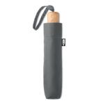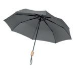 Πτυσσόμενη ομπρέλα 21 ιντσών, 3 τμημάτων, με ύφασμα pongee 190T RPET. Το πλαίσιο και οι νευρώσεις είναι επιμεταλλωμένες σε μαύρο χρώμα, με ξύλινη λαβή και κορδόνι στην άκρη. Χειροκίνητο άνοιγμα και κλείσιμο. Διαθέτει θήκη στο αντίστοιχο χρώμα και υλικό. Διατίθεται σε 5 χρώματα.