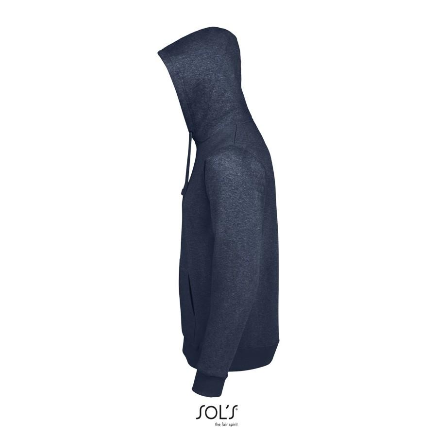 Unisex φούτερ με κουκούλα με: Τσέπη καγκουρό – Επενδεδυμένη κουκούλα με κορδόνια στον ίδιο τόνο και μεταλλικές τρύπες – Πλαϊνές ραφές – Ελαστικό ριπ 2×2 μανσέτες και τη μέση – Μισοφέγγαρο στο εσωτερικό του γιακά – Φακαρόλα στο λαιμό
