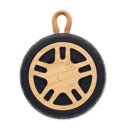 Ασύρματο ηχείο 5.0 με μπροστινό μέρος από μπαμπού, λουράκι από PU και μπαταρία 500 mAh, για περίπου 4 ώρες αναπαραγωγής.