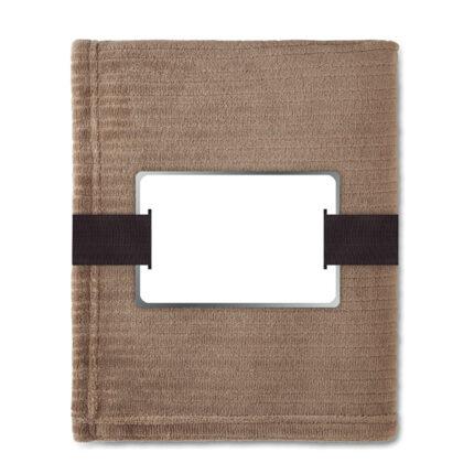 Μαλακή fleece κουβέρτα 240 gr/m² τυλιγμένη σε κορδέλα και με κάρτα όπου μπορεί να τυπωθεί λογότυπο.